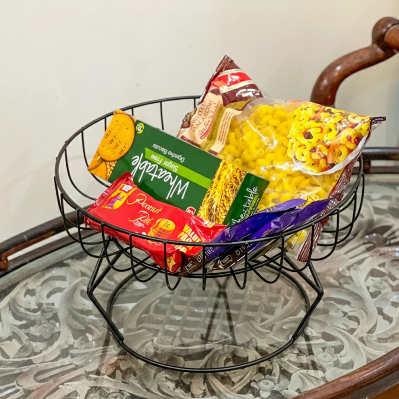 Introduce a touch of contemporary elegance to your kitchen or living space with the SleekWave Multipurpose Tray by Hamzastore.pk. This eye-catching centerpiece features a unique, abstract wavy design crafted from durable metal wire, creating a sleek and artistic silhouette. Its open structure ensures optimal air circulation, keeping your fruits and vegetables fresh longer, while adding a sophisticated visual element to your countertop, dining table, or living room.